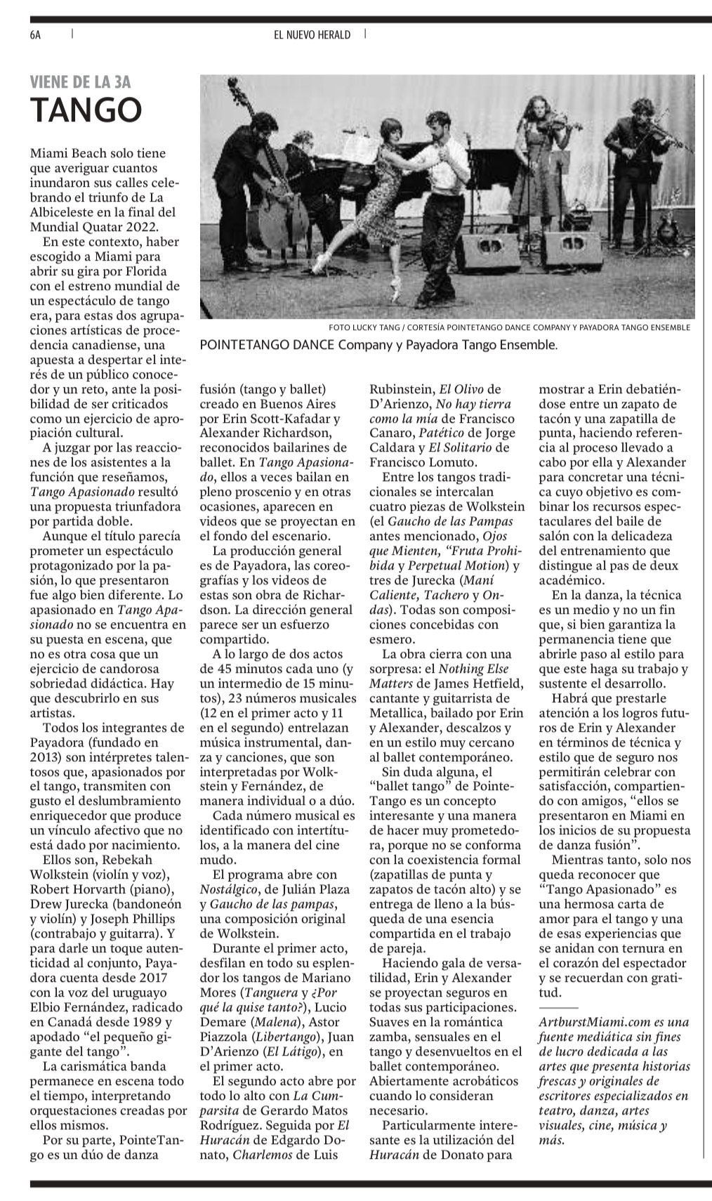 PointeTango on tour in Miami with Payadora Tango Ensemble