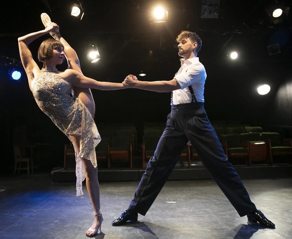 In recognition of the impact the COVID-19 shutdown had on the performing arts, Tango in the Dark begins with a mesmerizing contemporary ballet number featuring Scott-Kafadar dancing en pointe with partner Richardson, and gradually introducing tango steps. The number climaxes with an outstanding one–handed star lift, which caused the opening night audience to gasp and then erupt into applause.